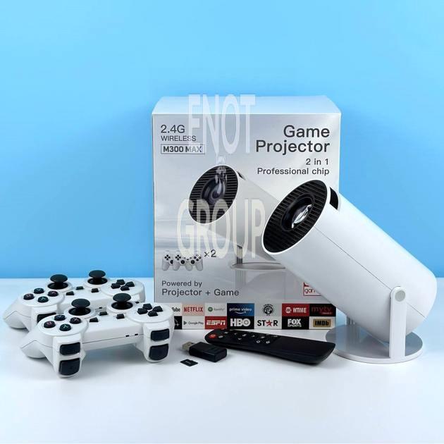 Оновіть свої розваги з M300 MAX / HY300 – сучасним проектором, що поєднує ігрову консоль, мультимедійний центр і кінотеатр в одному пристрої! Завдяки операційній системі Android 11, ви зможете переглядати фільми онлайн, встановлювати додатки та грати у вбудовані ігри з 2 джойстиками.