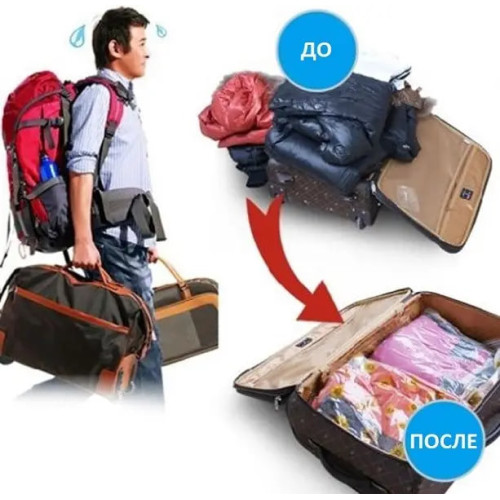 Завдяки цій простій процедурі, ваші речі зменшуються в об'ємі на 75%, що дозволяє заощадити простір у шафі чи валізі. Чим об'ємніший одяг (наприклад, пуховики чи подушки), тим більше місця ви зекономите."