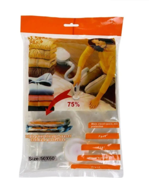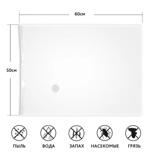 Цей вакуумний пакет виготовлений з міцного ПВХ, що забезпечує повітро- та водонепроникність. Завдяки цьому, ваш одяг залишається захищеним від вологи та запахів, а також від комах, оскільки вони не можуть існувати у безповітряному середовищі.