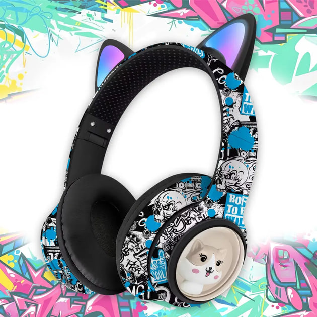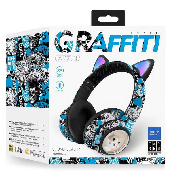 Зануртесь у світ музики та стилю з бездротовими наушниками AKZ-37, виконаними в яскравому графіті-стилі з ушками та світлодіодною підсвіткою! Ці наушники поєднують зручність, сучасний дизайн та відмінну якість звуку, ставши ідеальним аксесуаром для тих, хто цінує індивідуальність і технологічність. Вони легко складаються, зручні в носінні і підходять для будь-яких умов — від тренувань до прогулянок по місту.