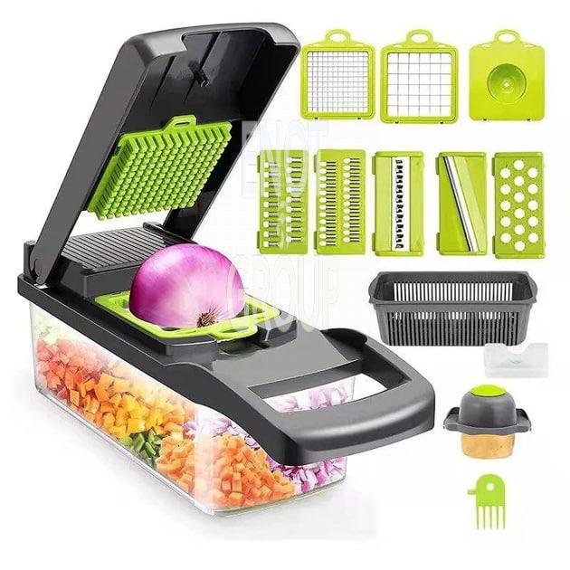 - Контейнер для збору продуктів: У комплекті йде зручний контейнер, який збирає нарізані продукти, дозволяючи зберігати кухонний простір в чистоті і запобігаючи розкиданню інгредієнтів.