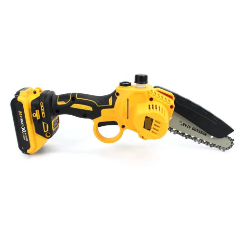 Легка, зручна та потужна — ця акумуляторна пила оснащена 24V батареєю ємністю 4Ah, що забезпечує тривалу автономну роботу без втрати потужності. Шина довжиною 15 см дозволяє комфортно працювати однією рукою навіть у важкодоступних місцях.