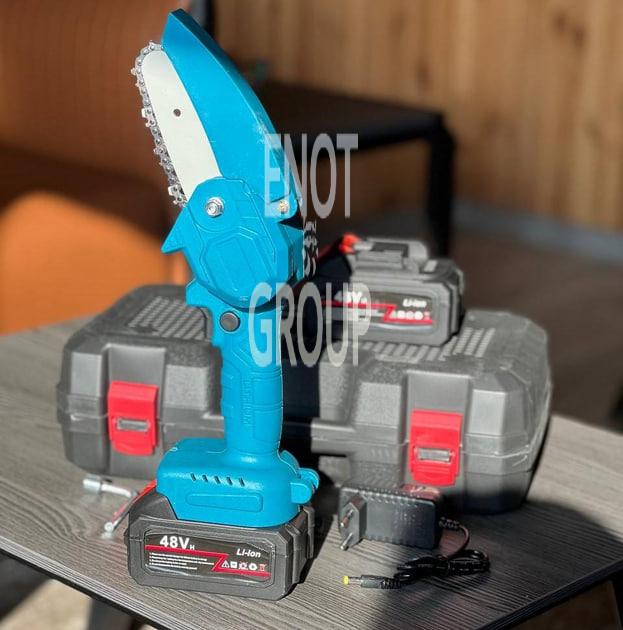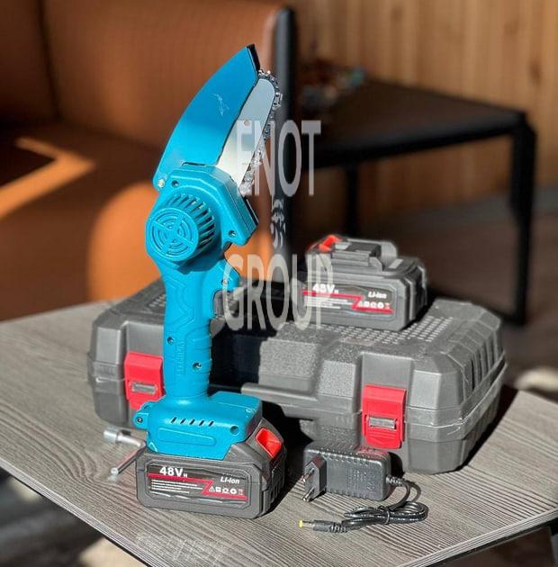 Потужність 48V — легко ріже гілки, дошки, невеликі дерева