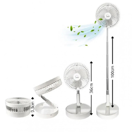 Folding Fan — це мультифункціональний телескопічний вентилятор, який трансформується з настільного у підлоговий завдяки висувній штанзі. Легкий, портативний і повністю складаний, він ідеально підходить як для дому чи офісу, так і для поїздок, кемпінгу чи відпочинку на природі.