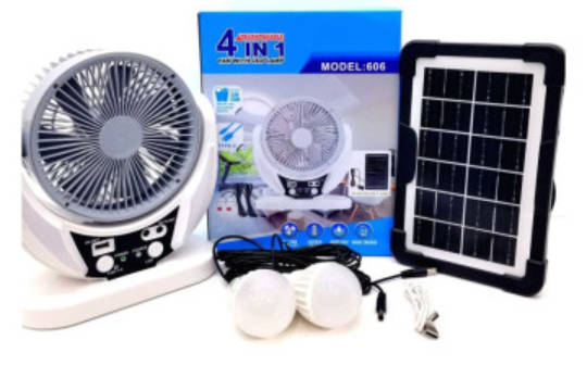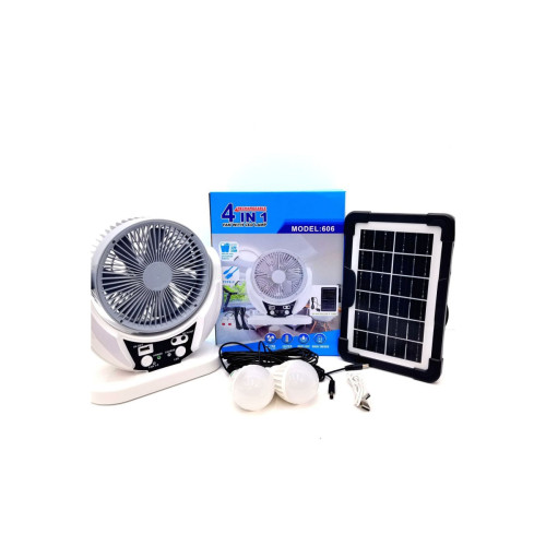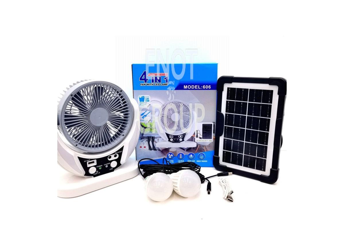 Портативний вентилятор моделі 606 4в1 — це компактне і функціональне рішення для охолодження та освітлення у будь-яких умовах. Завдяки сонячній панелі, вбудованому акумулятору, LED-лампам та USB-зарядці, він ідеально підходить для дому, дачі, кемпінгу або під час відключень електроенергії.