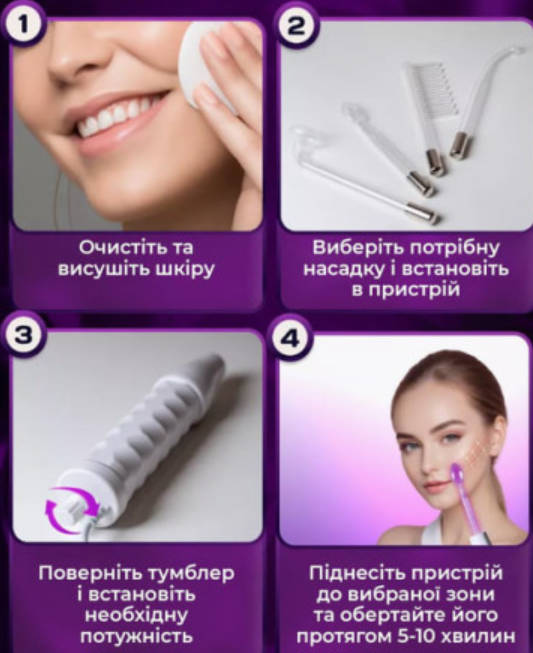 Дарсонваль косметологічний з 4 насадками — комплексний догляд за шкірою та волоссям