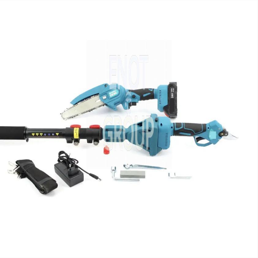 Професійний набір Instrumentop 3в1 — це універсальний інструмент для садівника, фермера або працівника ЖКГ. У комплекті ви отримуєте потужну акумуляторну пилу, інноваційний цифровий секатор та розсувну телескопічну штангу, яка дозволяє легко діставати навіть найвищі гілки.