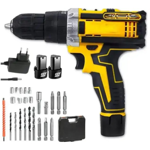 Універсальний набір інструментів YellowPro DuoForce 12V — акумуляторний шуруповерт та мініболгарка з 2 батареями