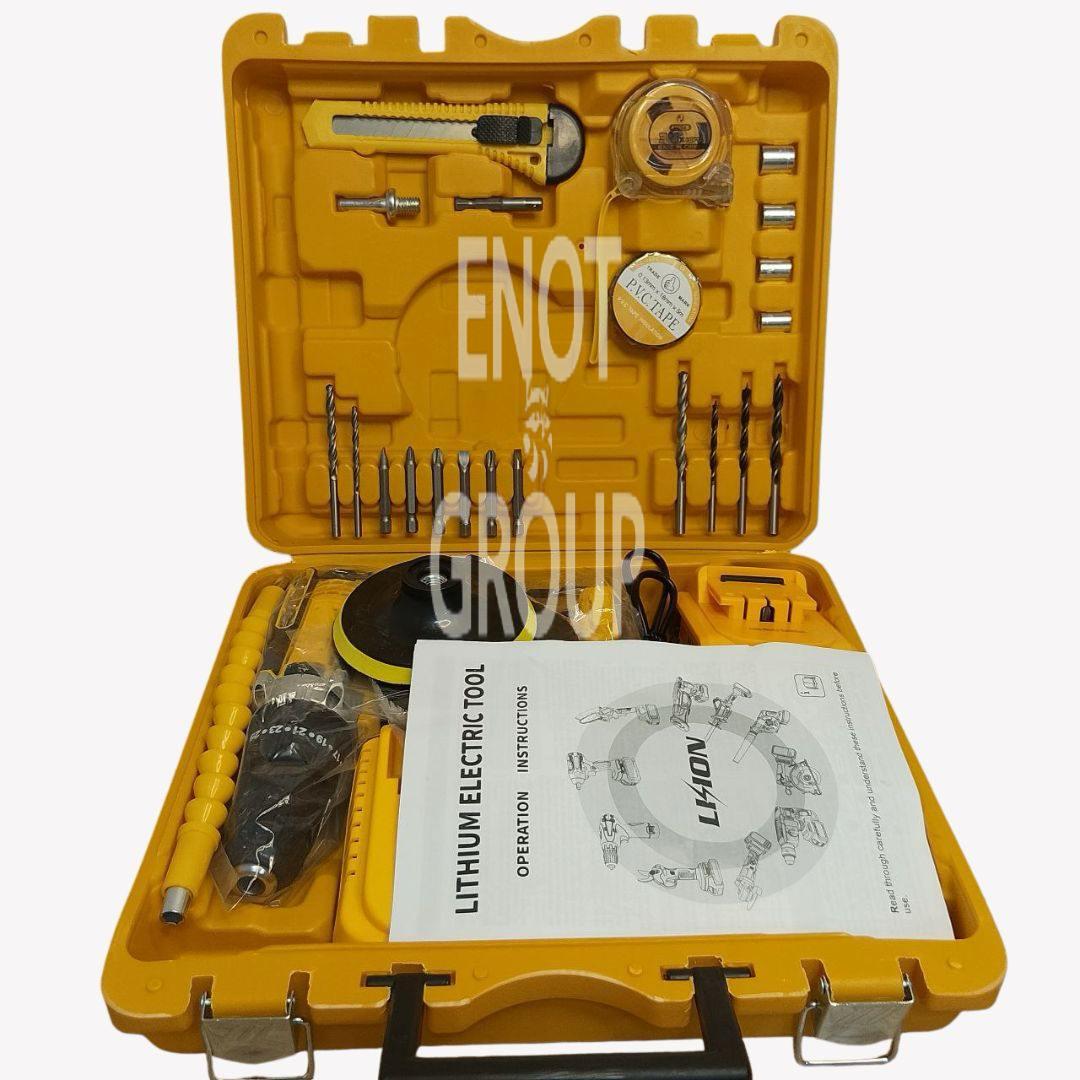 У комплекті ви отримаєте широкий вибір насадок, свердел і біт, що дозволяє виконувати різноманітні завдання без необхідності купувати додаткові аксесуари. Міцний кейс забезпечує комфортне зберігання, захист від пошкоджень і зручність при транспортуванні.