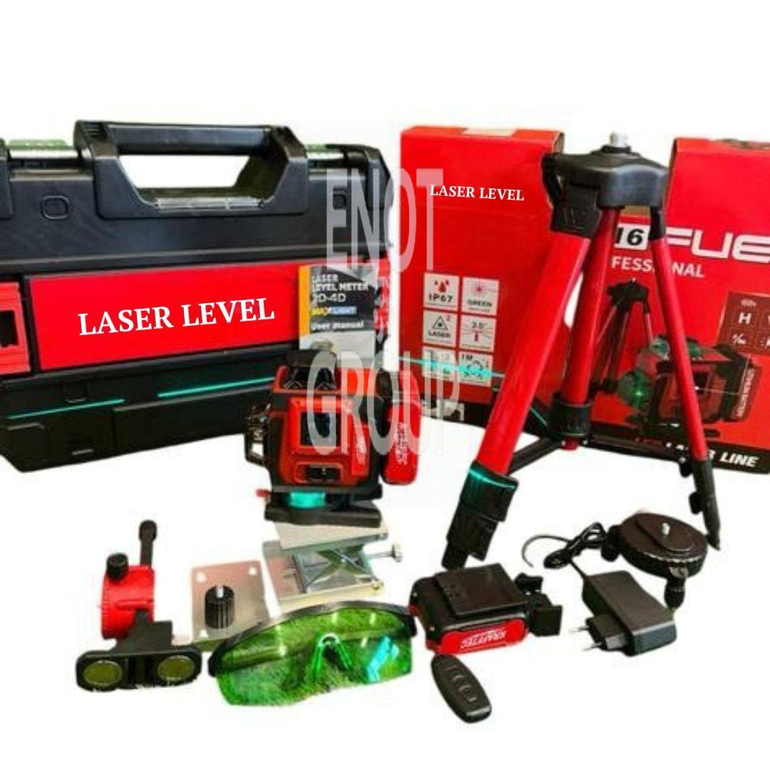 LaserPro Max 4D 360° – Професійний акумуляторний лазерний рівень з зеленим променем, штативом та повним набором кріплень