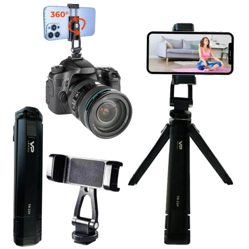 Veron TM-21H — компактний та багатофункціональний монопод-трипод, створений для тих, хто цінує зручність і якість зйомки. Завдяки висоті 21 см він легко поміщається навіть у невелику сумку, але при цьому забезпечує стабільність і комфорт при роботі з камерою чи смартфоном.