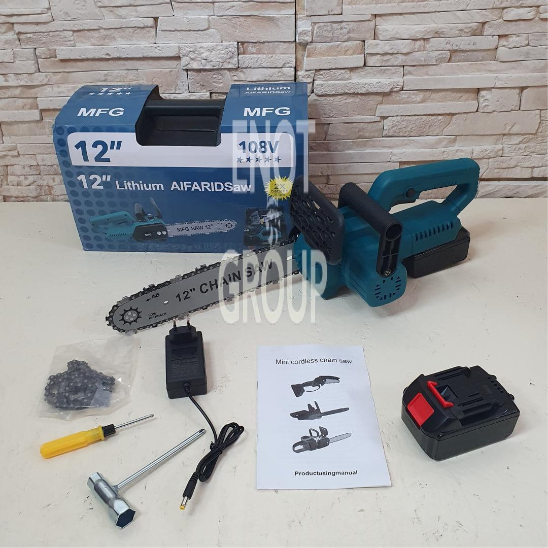 Акумуляторна ланцюгова пилка 48V A12-IF з 2 батареями - Портативна, потужна, з кейсом
