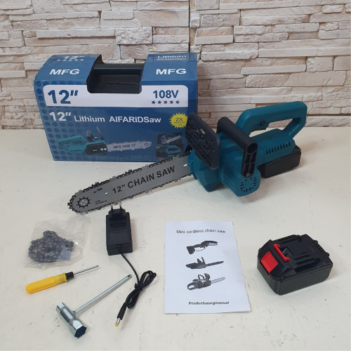 Акумуляторна ланцюгова пилка 48V A12-IF з 2 батареями - Портативна, потужна, з кейсом