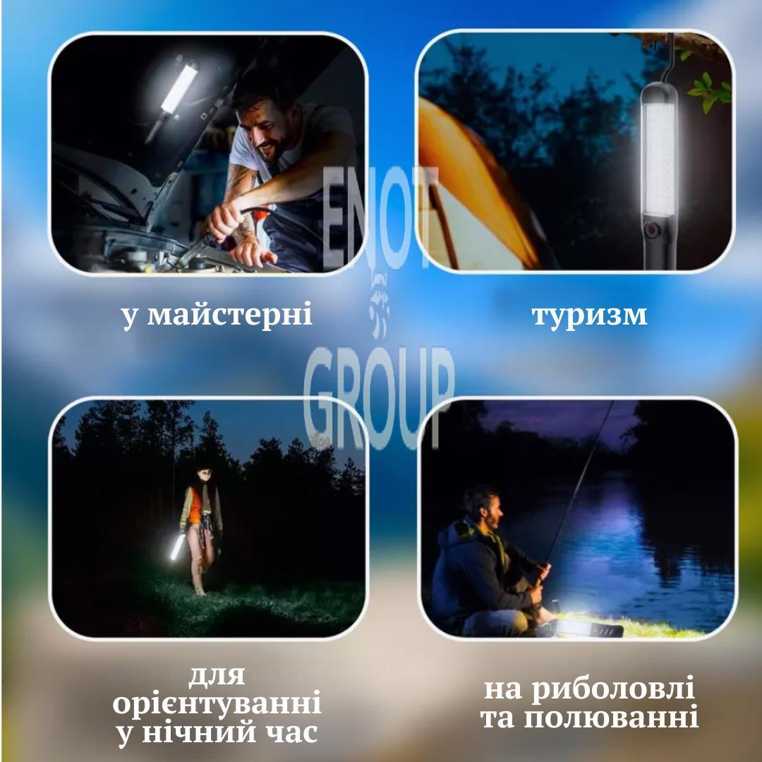 Акумуляторний ліхтар LED відмінно підходить для використання вдома, на природі, під час подорожей або в надзвичайних ситуаціях. Його компактний розмір дозволяє завжди мати його під рукою, а потужне освітлення забезпечить вас світлом там, де це необхідно.