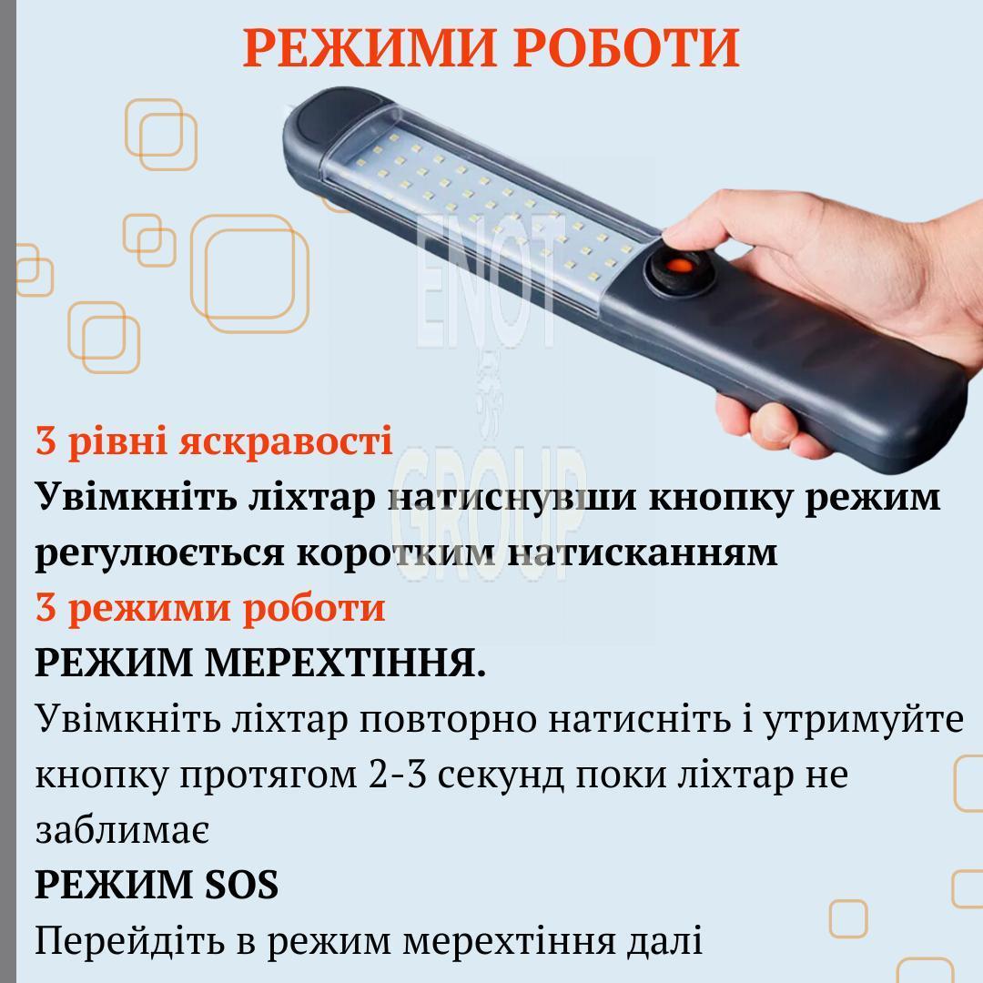 - Множинні режими роботи – регулювання яскравості для різних потреб: від роботи у темних приміщеннях до використання як сигнального ліхтаря.