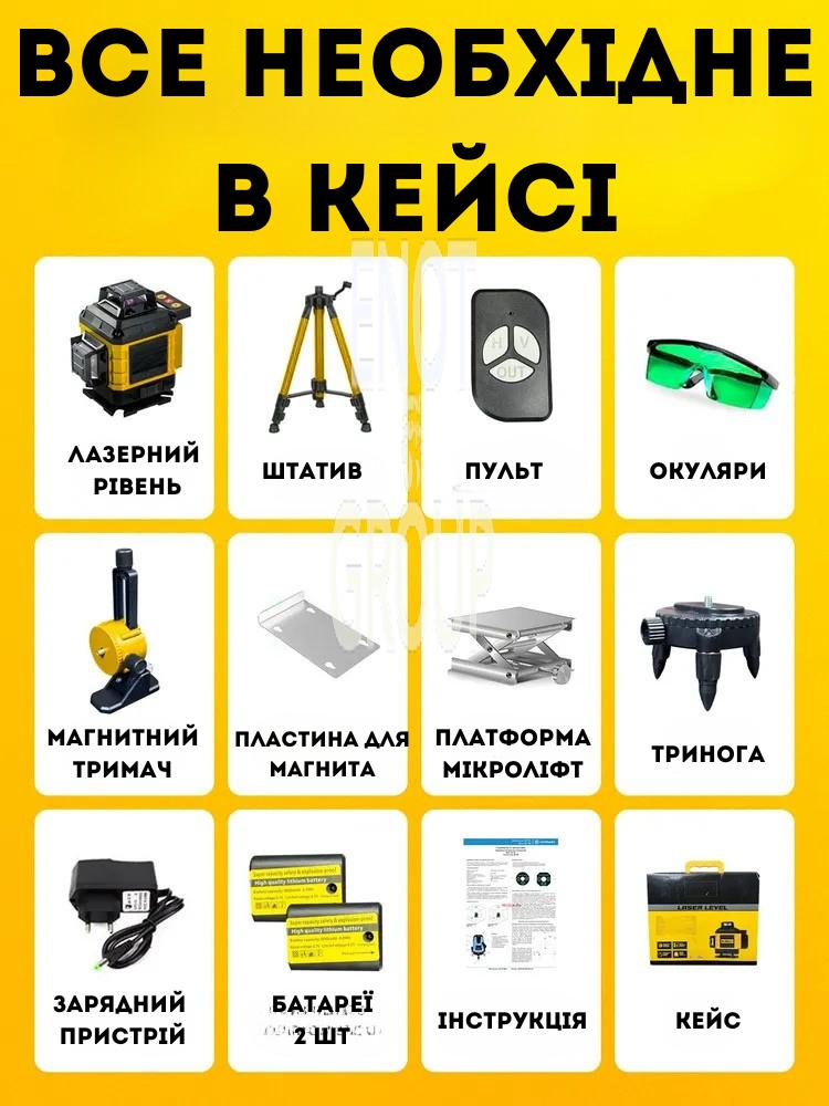 16 лазерних ліній 360° – охоплення всіх площин: 4 вертикалі, 4 горизонти, 8 перетинів