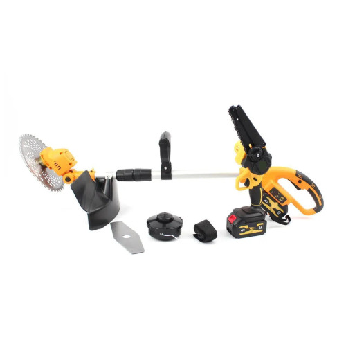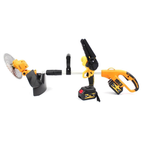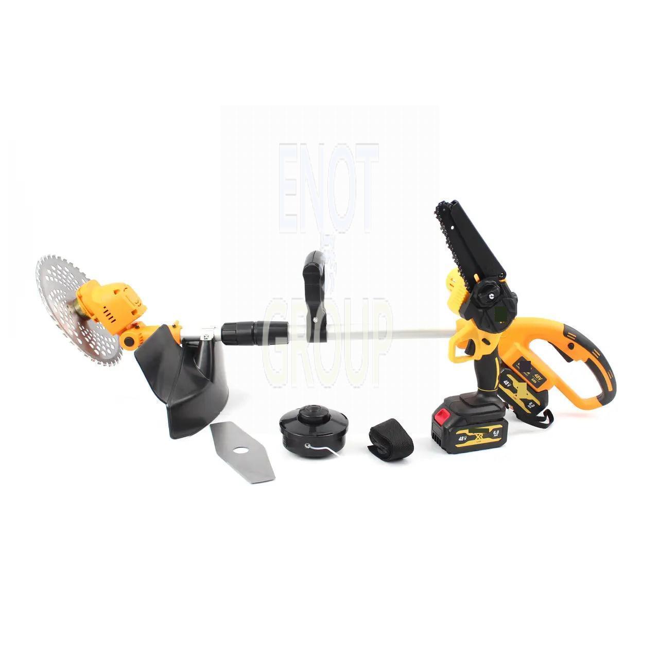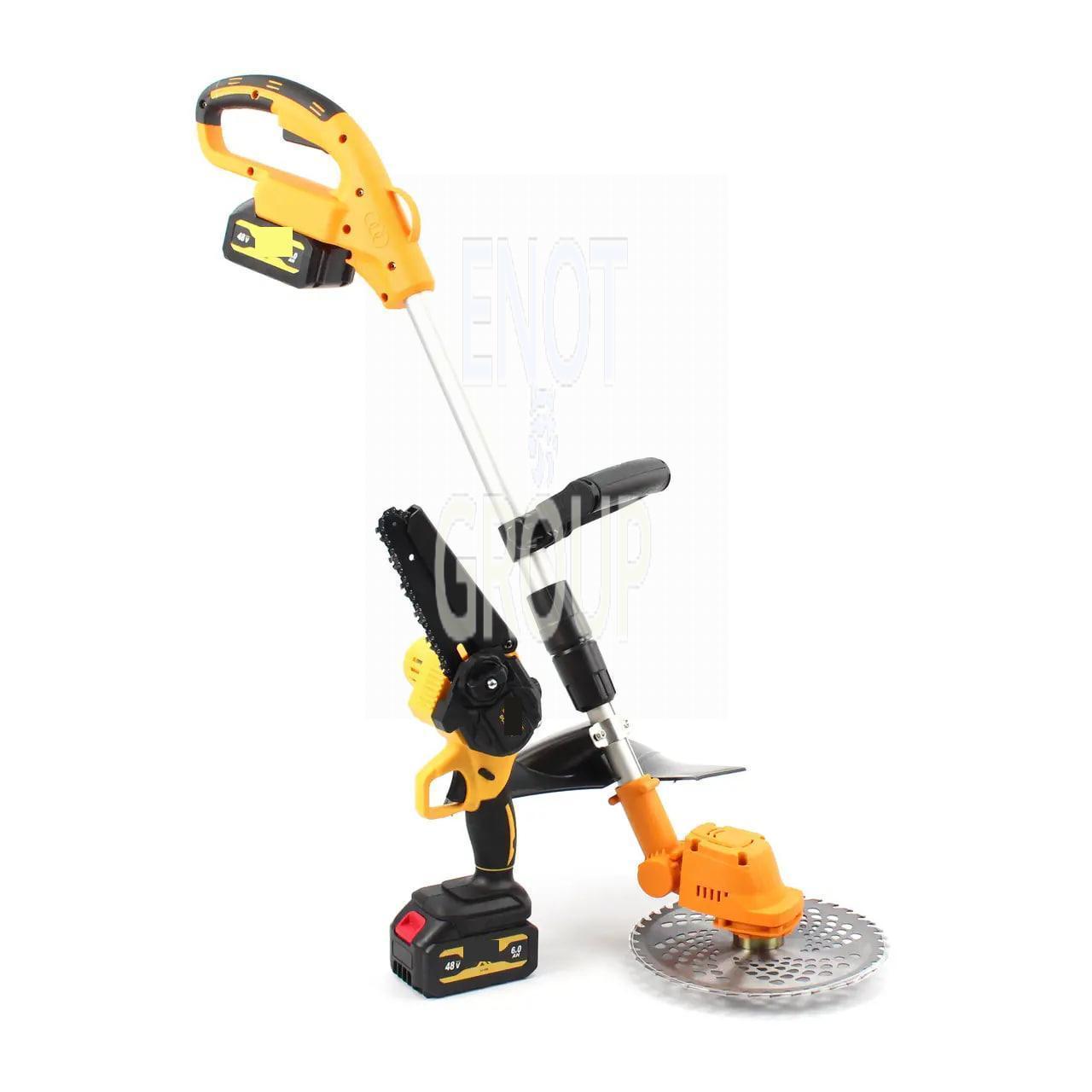 - Зручність використання: перемикання між тримером та міні-пилою без зайвих зусиль, що дозволяє швидко адаптуватися до різних робіт.