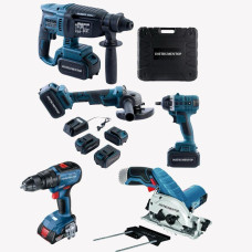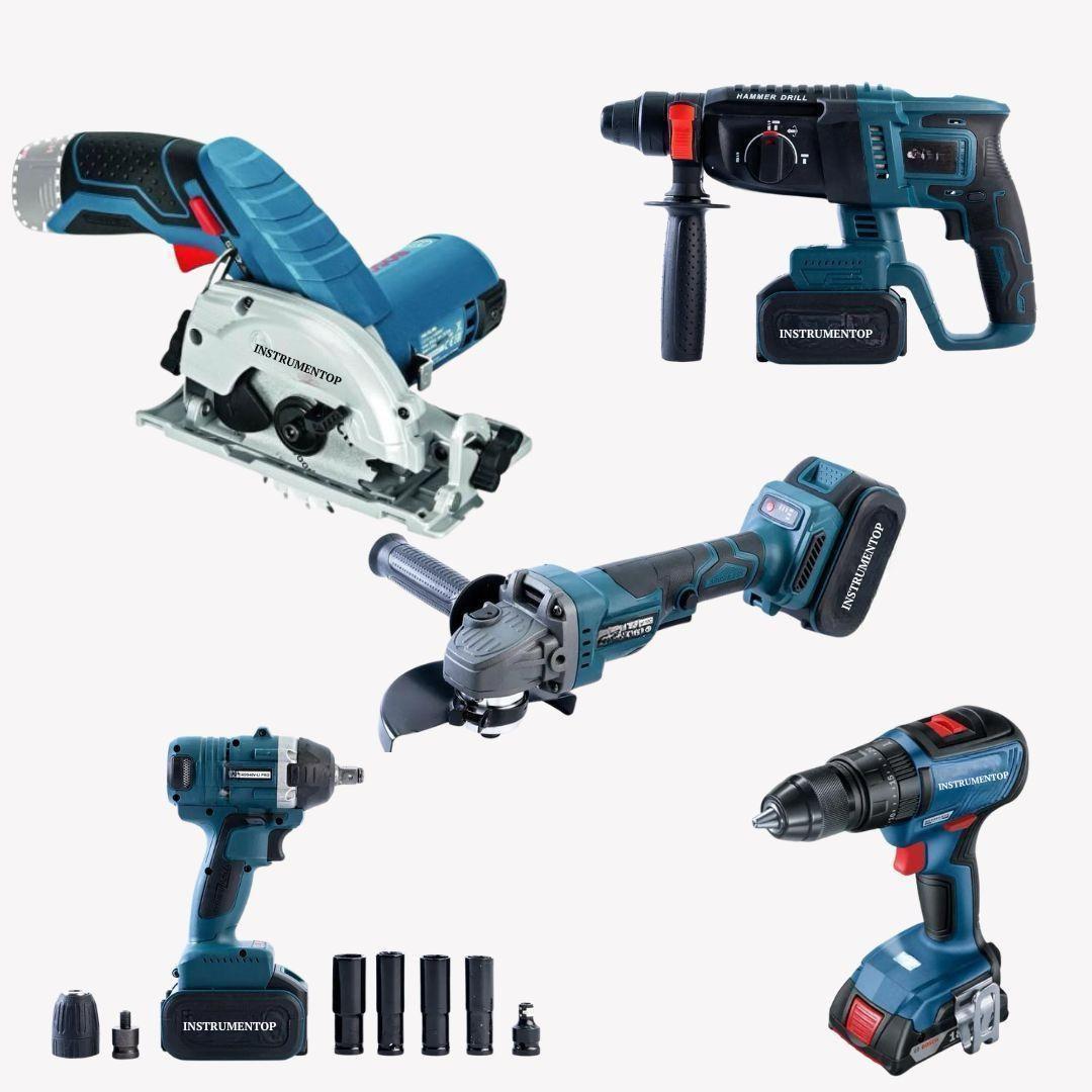 Набір інструментів 5-в-1 Instrumentop 36V — Шуруповерт, Болгарка, Перфоратор, Гайковерт, Циркулярна пила — це універсальне професійне рішення для тих, хто хоче мати все необхідне для будівельних, монтажних та ремонтних робіт в одному комплекті.