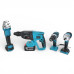 У комплекті: інструменти, два акумулятори, зарядний пристрій, кейси