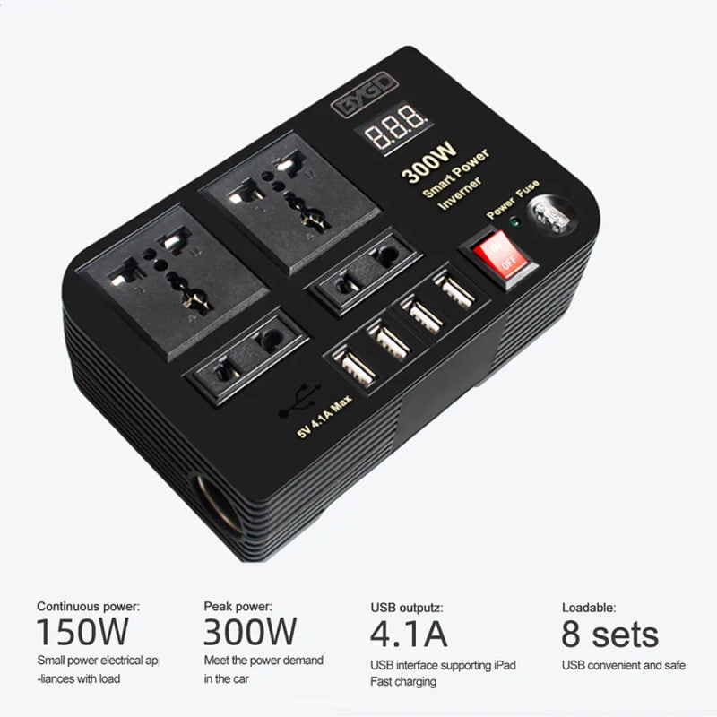 Інвертор забезпечує номінальну потужність 300 Вт, достатню для роботи ноутбуків, телевізорів невеликого та середнього розміру, LED-освітлення, зарядних пристроїв для смартфонів і планшетів, а також іншої побутової електроніки з помірним енергоспоживанням. Модифікована синусоїда гарантує стабільну роботу більшості пристроїв за доступною ціною.
