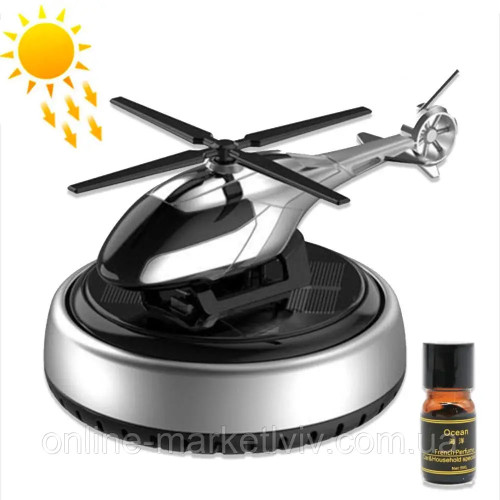 Цей оригінальний ароматизатор для автомобіля у формі гвинтокрила на сонячній панелі — ідеальний аксесуар для тих, хто хоче не лише освіжити повітря в салоні, але й додати стильний елемент до інтер'єру авто. Завдяки сонячній батареї, ароматизатор працює без необхідності в підключенні до джерела живлення, що робить його зручним і економічним.