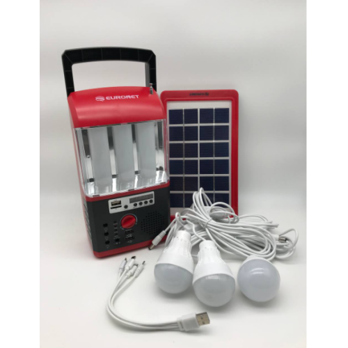 Автономна система освітлення EURONET 103 із сонячною панеллю та 3 LED лампами акумулятор 8000 mAh
