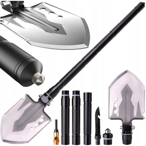 - Кількість інструментів у наборі: 16 (лопата, мотика, викрутка, свисток, склобій, скребок, острог для риби, відкривалка, тактична біта, ручка для викрутки, кремінь, універсальний інструмент і інші)