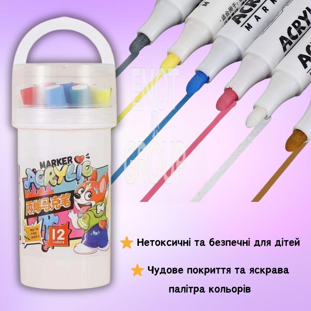 Барвистий набір акрилових маркерів, 12 кольорів – ваш ідеальний інструмент для творчості!