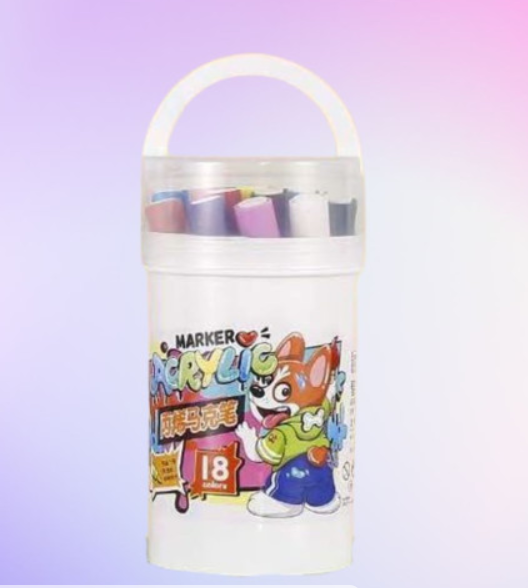Набір із 18 яскравих акрилових маркерів розроблений для тих, хто любить експериментувати та створювати. Ідеально підходить для малювання, розфарбовування, штрихування та декорування будь-яких поверхонь. Ці маркери дарують чудове покриття, безпечні для дітей і мають високу якість фарб.