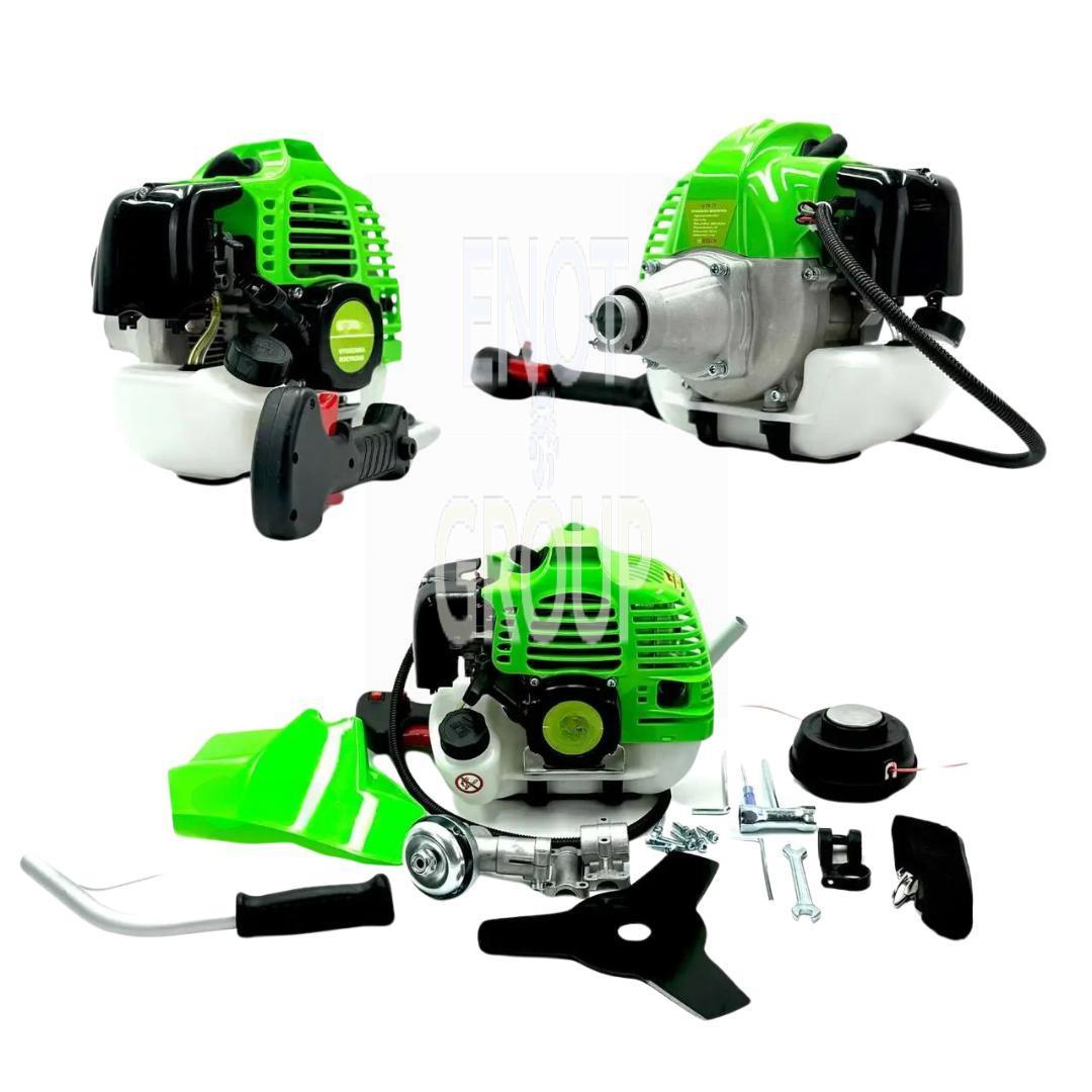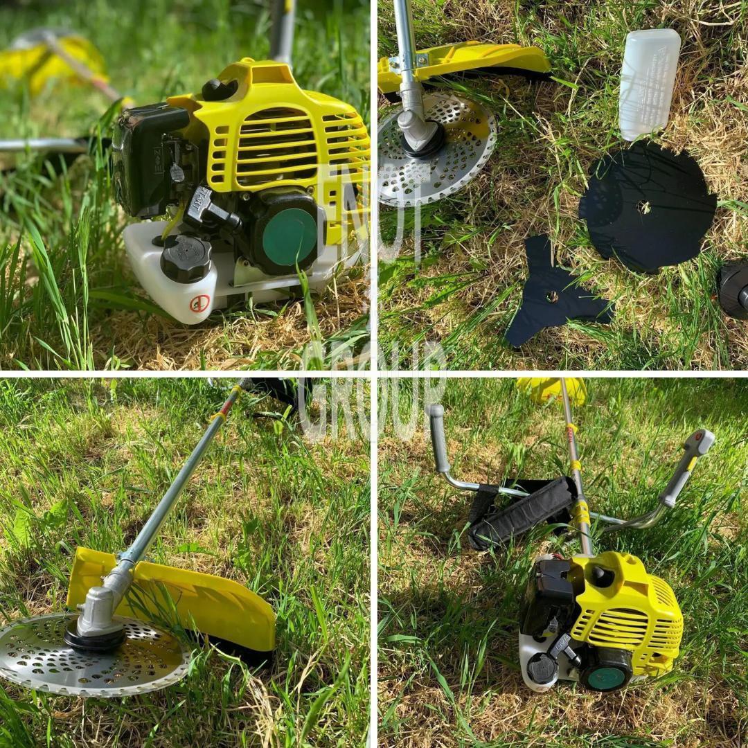 - Потужний двигун: Надійний бензиновий двигун, що забезпечує стабільну роботу та високу продуктивність для косіння трави та чагарників.