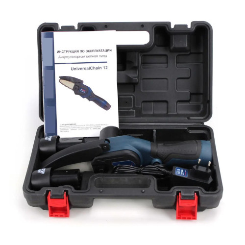 У комплекті ви отримуєте пиляльний інструмент, зарядний пристрій, два акумулятори (3,0 AH), ланцюг та зручний кейс для зберігання і транспортування. Пила легко використовувана як правою, так і лівою рукою, що робить її універсальним інструментом для різних видів робіт у саду та господарстві.