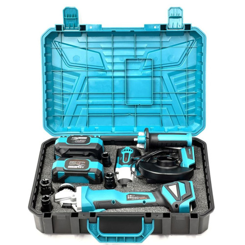 - Універсальність комплекту для виконання широкого спектра завдань – від монтажу до різання та шліфування.