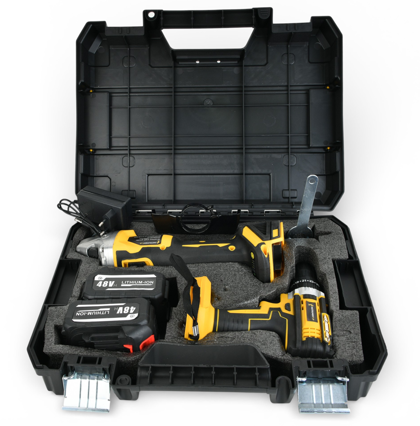 Акумуляторний набір 2в1 Instrumentop містить ударний шуруповерт (36V, 4AH) з двоступеневою швидкістю та кутову шліфувальну машину (36V, 6AH), яка дозволяє повертати корпус на 180°. Шуруповерт гарантує потужне та точне свердління і загвинчування в різних матеріалах завдяки можливості регулювати швидкість. Кутова шліфувальна машина відрізняється високою ефективністю та зручністю для роботи в обмежених просторах завдяки функції повороту корпусу на 90° в обидва боки. Обидва інструменти працюють від потужних акумуляторів, що дозволяє вам працювати без обмежень. Ергономічний дизайн забезпечує комфорт навіть при тривалому використанні.