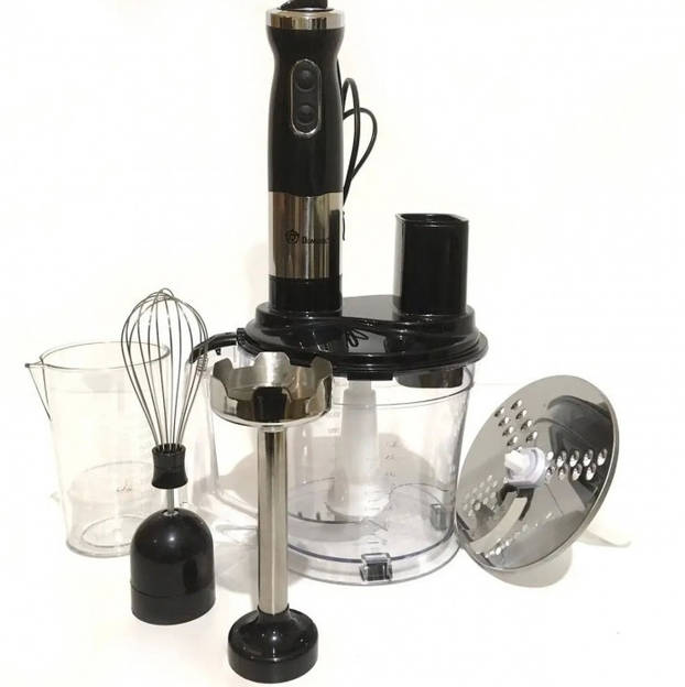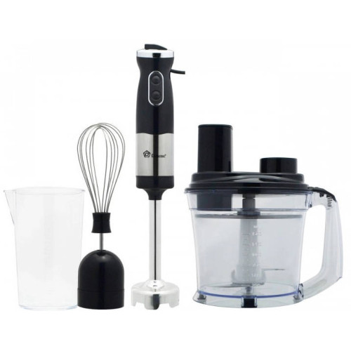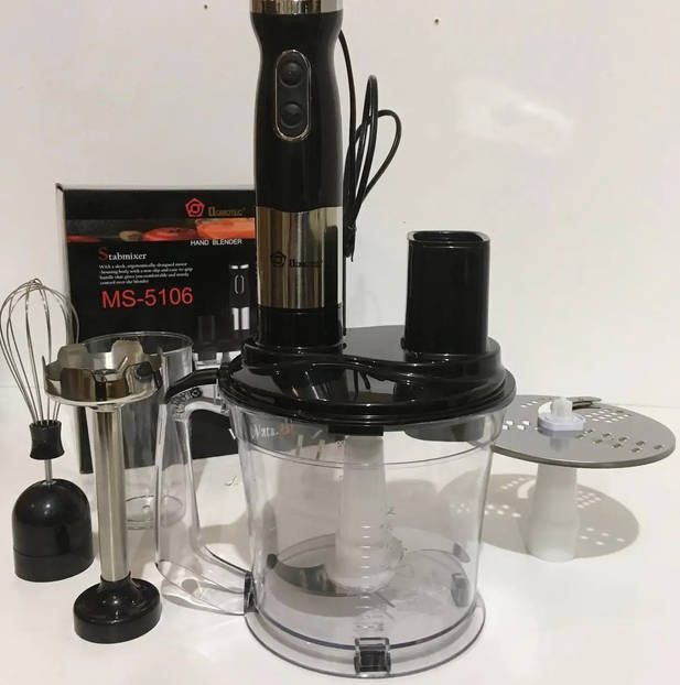 Блендер Domotec MS 5106 — це бюджетний та функціональний прилад, який поєднує в собі п'ять основних функцій: занурювальний блендер, міксер, подрібнювач, овочерізку та віночок. Потужність 800 Вт дозволяє ефективно приготувати різноманітні страви. Насадки з нержавіючої сталі забезпечують довговічність та легкість у догляді. Чаша об'ємом 1,7 л дозволяє зручно готувати страви для великої родини.