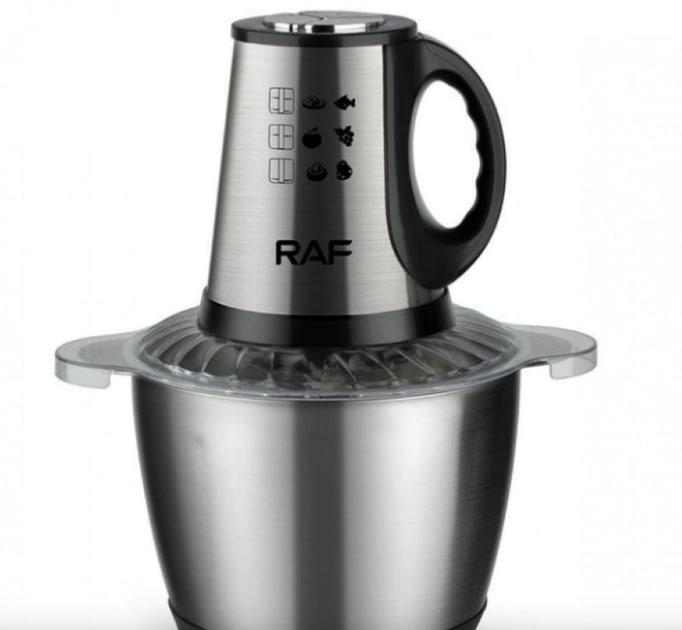 Блендер RAF R-7032 оснащений трьома режимами нарізання – дрібна, середня та велика, що дозволяє точно контролювати консистенцію продуктів. Корпус і чаша з нержавіючої сталі забезпечують довговічність і простоту догляду, а надійна фіксація чаші гарантує безпечну експлуатацію. Знімні елементи та гладкі поверхні спрощують очищення після роботи.