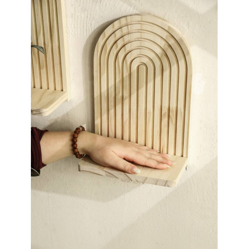 Створіть затишну та естетичну атмосферу у вашому домі з нашою арочною дерев’яною настінною полицею. Мінімалістичний, але водночас вишуканий дизайн робить її ідеальним акцентом для сучасних і класичних інтер’єрів, додаючи легкості та завершеності кімнаті.