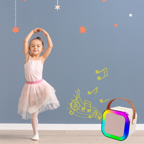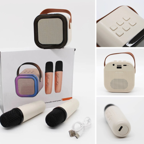 Даруйте дітям можливість відчути себе справжніми зірками з бездротовим караоке K12! Ця портативна Bluetooth колонка зі стильним бежевим дизайном оснащена двома мікрофонами для співу дуетом і має яскраве LED-підсвічування, що створює особливу атмосферу. Завдяки підтримці USB-підключення та відтворення улюблених пісень прямо з флешки, діти можуть співати свої улюблені хіти де завгодно. Ідеально підходить для домашніх вечірок, свят та сімейних розваг.