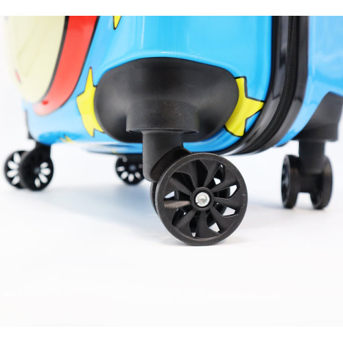 Модель оснащена плавно рухомими коліщатками та телескопічною ручкою, яка регулюється по висоті, що дозволяє дитині зручно катати чемодан самостійно.