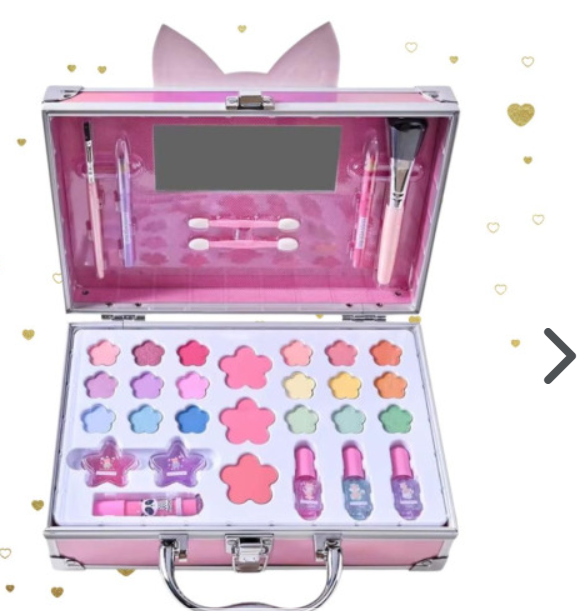Багатий набір для макіяжу – тіні, блиски, помади, рум’яна, лак для нігтів тощо.