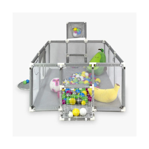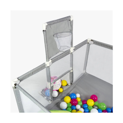 Дитячий манеж KP-82 ігровий простір 180х120 см із сухим басейном, баскетбольним кільцем і воротами, сірий, безпечний та компактний