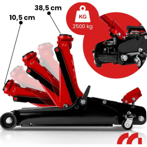 Домкрат 2.5 т — це сучасний інструмент для підйому автомобілів, що поєднує компактність, надійність і високу ефективність. Завдяки низькопрофільній конструкції він чудово підходить навіть для машин із мінімальним кліренсом, а вантажопідйомність у 2500 кг дозволяє використовувати його як для легкових авто, так і для позашляховиків.