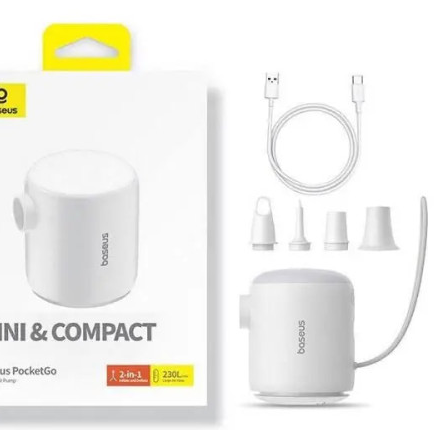 Portable Air Pump Baseus (C11157700221-00) White — це компактний та потужний портативний електричний компресор, створений для швидкого накачування шин автомобілів, велосипедів, м’ячів та інших надувних виробів. Його стильний дизайн та інтуїтивне керування роблять цей пристрій незамінним як у дорозі, так і вдома.