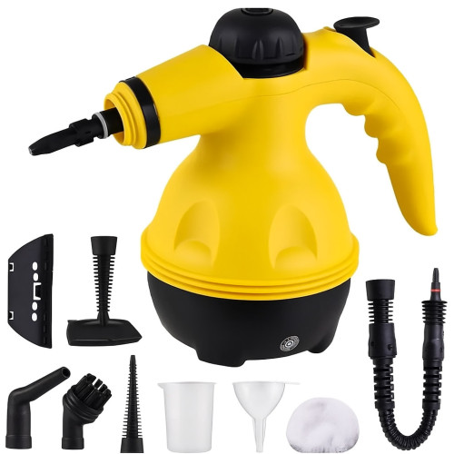 Завдяки об’єму бака на 350 мл пристрій може працювати безперервно до 15 хвилин. Нагрівання займає лише 2–3 хвилини, після чого він готовий до використання. 7 змінних насадок у комплекті забезпечують універсальність: щітки для плитки, насадка для скла, сопло для важкодоступних місць, гнучкий шланг та тканинна насадка для одягу.
