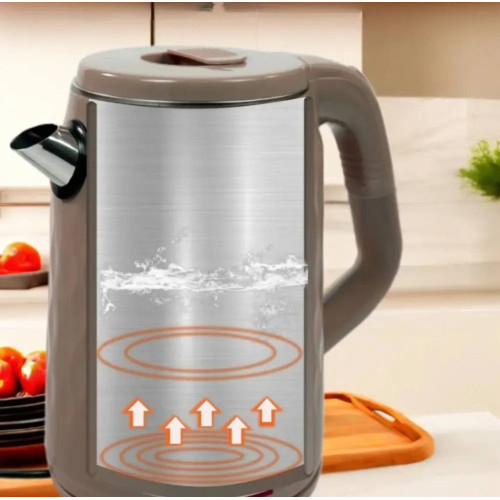 Електрочайник Hoffmans HM-2542 металевий корпус із нержавіючої сталі, захист від перегріву, авто-вимкнення, LED індикатор, прихований нагрівальний елемент, стильний дизайн, поворотна база 360
