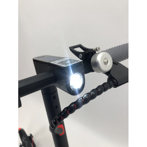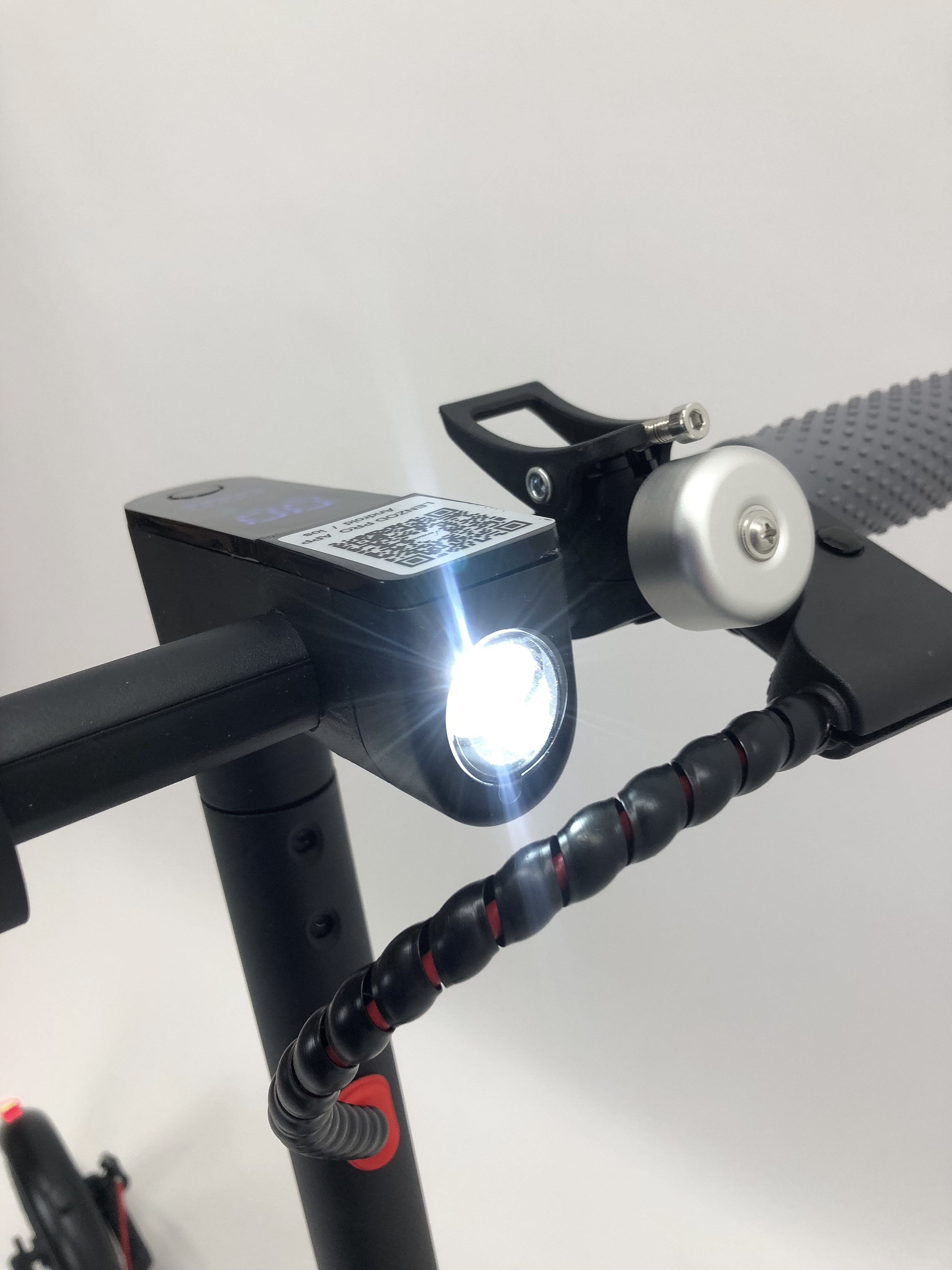 Для безпеки передбачено дискові гальма, світлодіодне переднє та заднє освітлення, а також вологозахист IP54. Самокат синхронізується зі смартфоном через Bluetooth, що дозволяє відстежувати заряд батареї, швидкість та пробіг.