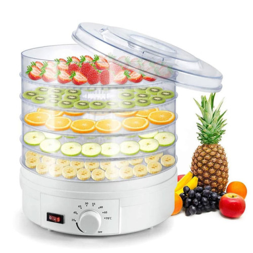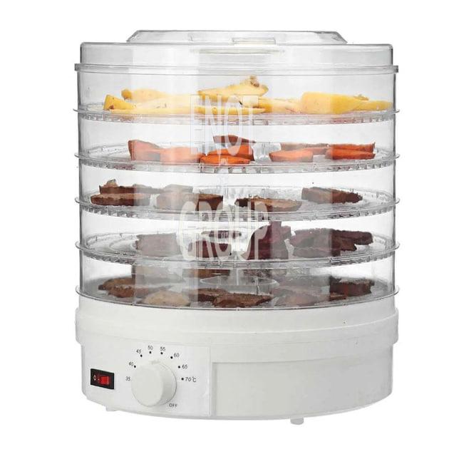 Електрична сушарка FOOD DEHYDRATOR оснащена зручною системою регулювання температури, що забезпечує якісне висушування з максимальною кількістю збережених вітамінів. Продуманий бортик у підставці захищає мотор від соку та крапель під час сушіння соковитих фруктів.