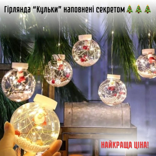Створіть атмосферу зимової казки з унікальною гірляндою "Ялинка у кульці зі снігом". Ця чарівна гірлянда стане ідеальним доповненням до вашого новорічного декору, додавши святкового настрою кожній кімнаті. Кожна кулька наповнена маленькою зеленою ялинкою та штучним снігом, що створює неповторний ефект засніженої зими.