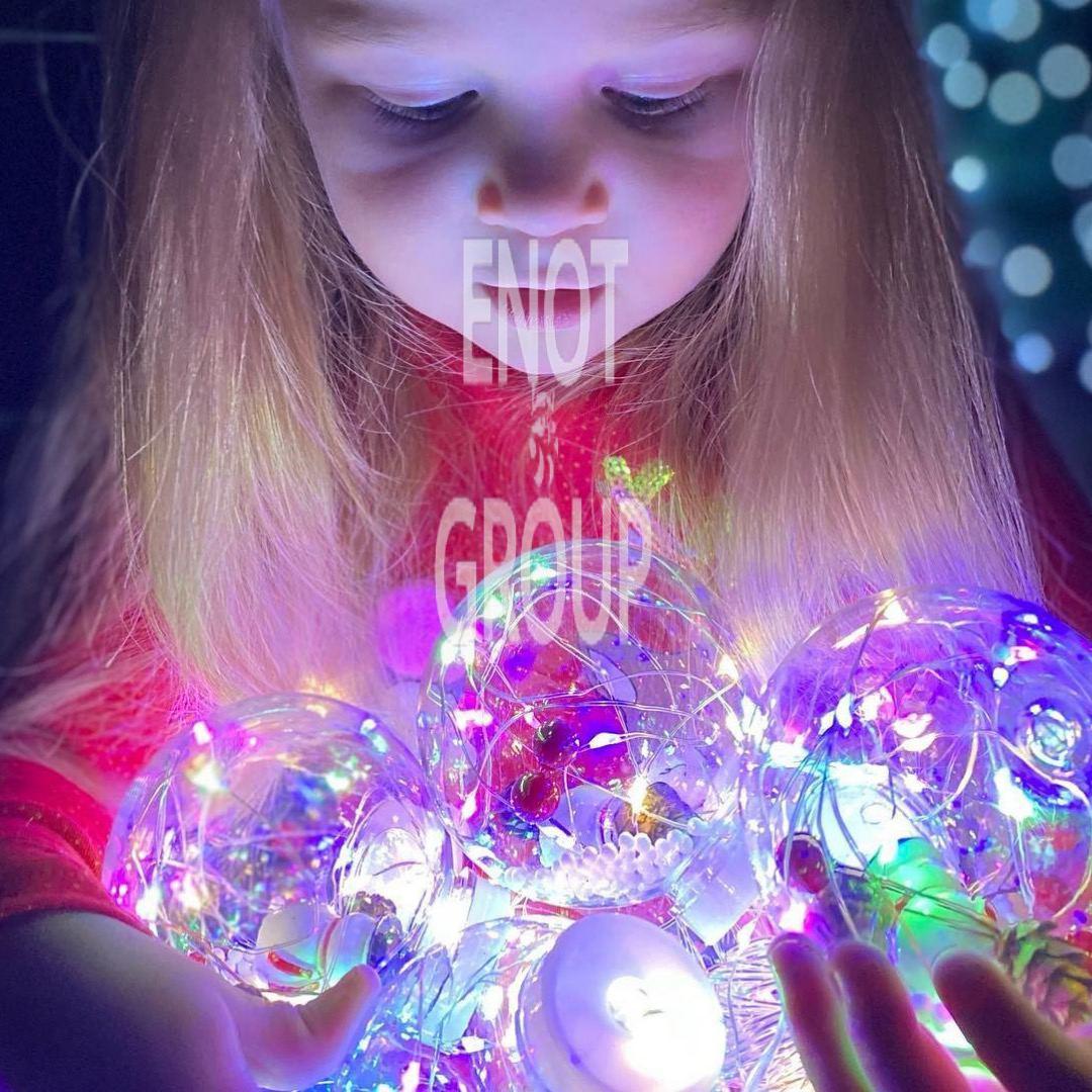 - Незвичайний дизайн: Кожна лампочка у формі прозорої кульки містить мініатюрну ялинку, яка "поринає" у снігову заметіль.