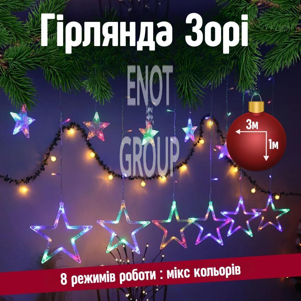 Гірлянда "Зорі" (Зорепад) LED 12 зірок, мікс кольорів | Ідеальна прикраса для зимових свят