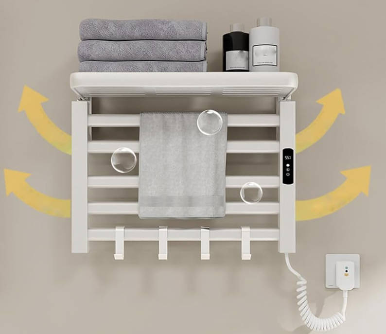 Автономна електрична робота. Поєднання сушара і полиці. Комфортна температура нагріву. Компактний настінний формат. Підходить для щоденного використання.